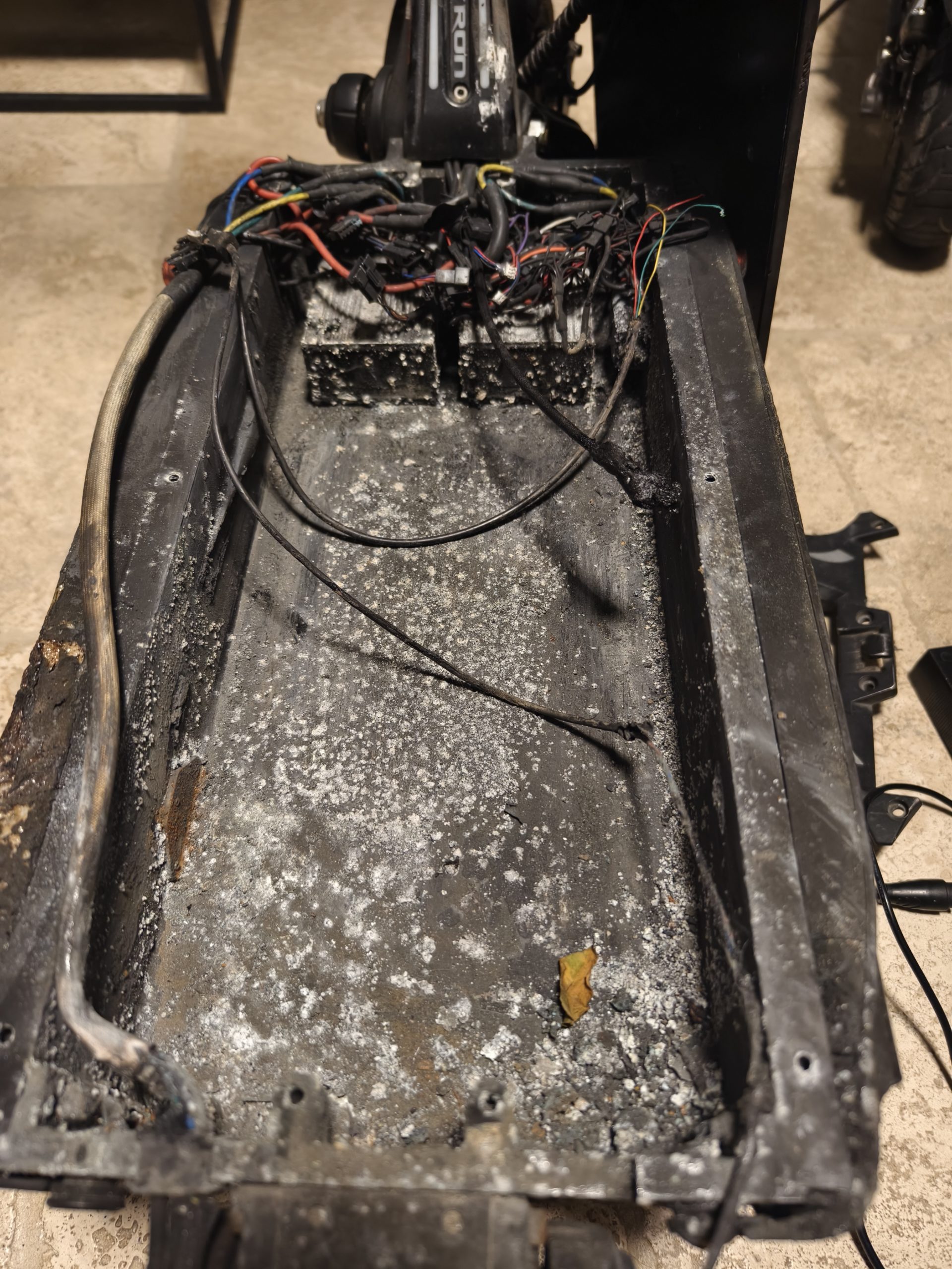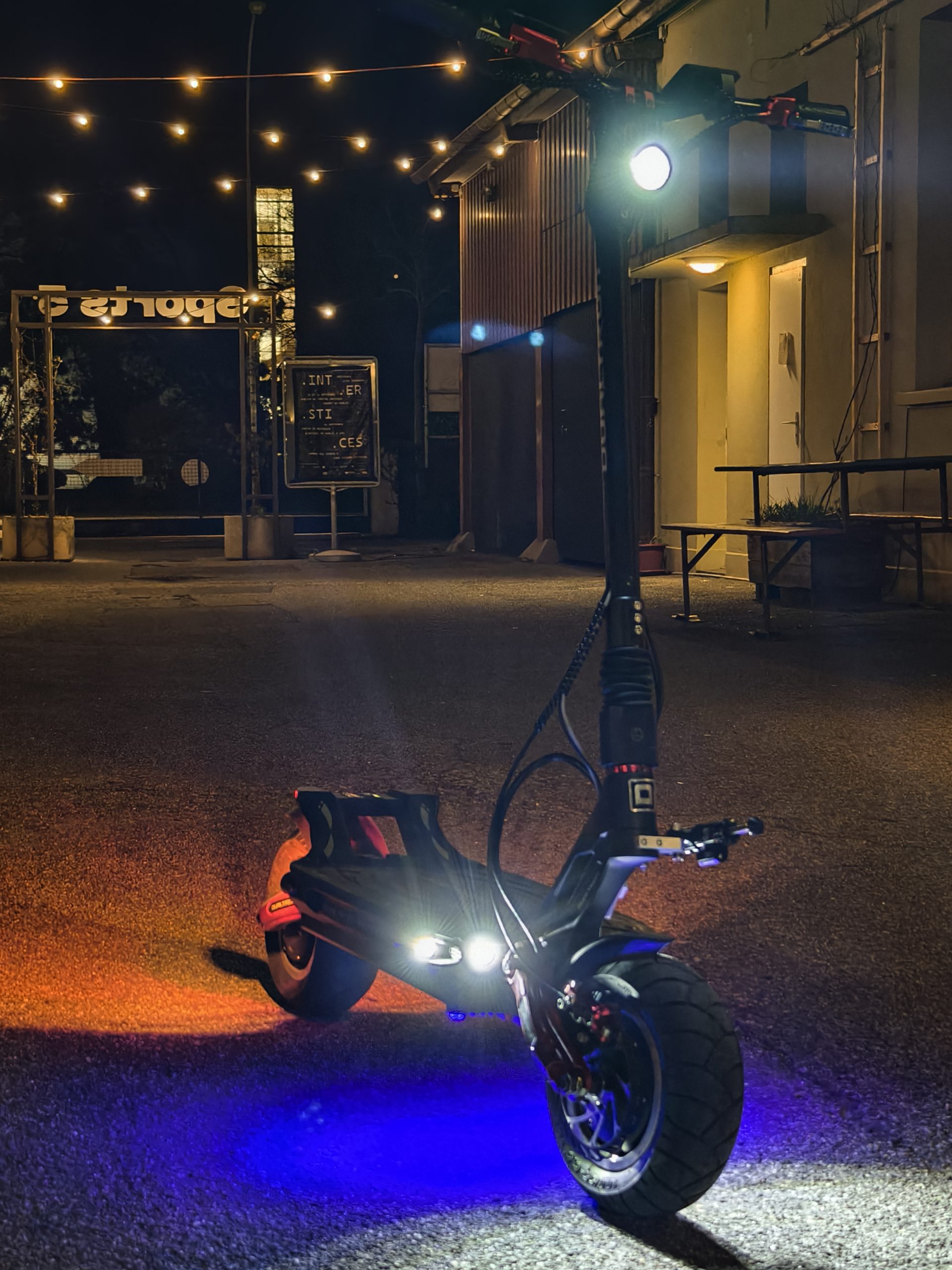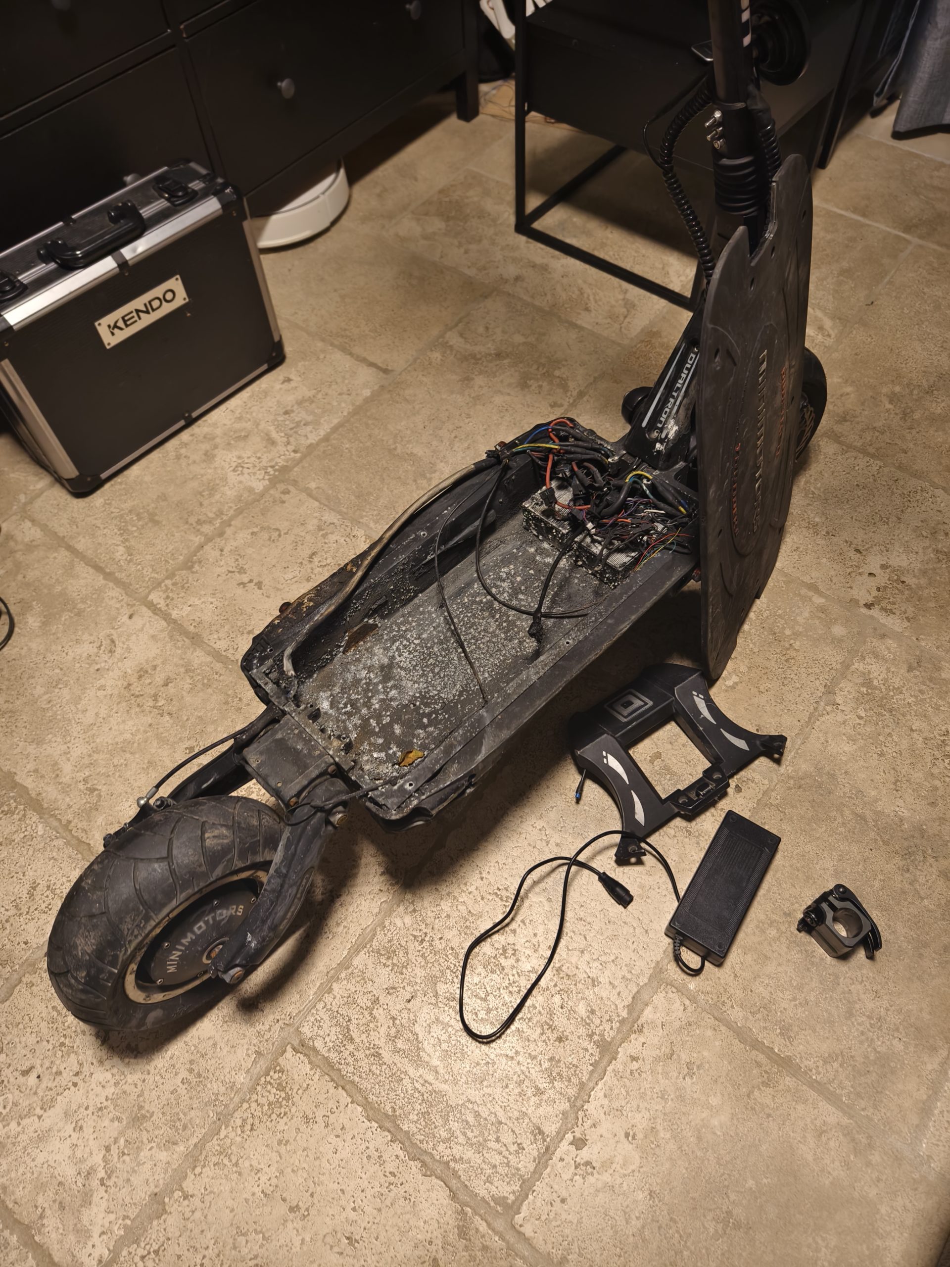 À l’origine, cette Dualtron Thunder 2 n’était plus qu’une machine condamnée. Victime d’un incendie, elle avait subi des dégâts importants et semblait destinée à finir au rebut. Pourtant, derrière cette carcasse abîmée, il restait un châssis solide et un énorme potentiel. C’est ainsi qu’est né ce projet : redonner vie à la trottinette, mais en la reconstruisant entièrement et en l’améliorant profondément. Projet réalisé par un membre qui reste anonyme.